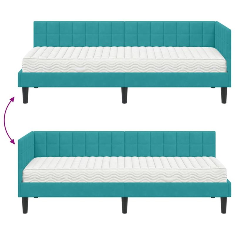 Ъглова рамка за легло с матрак с таблото 2 pcs Тюркоаз Кадифе