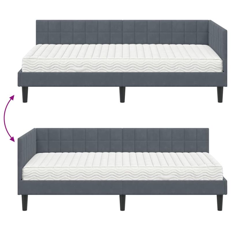 Ъглова рамка за легло с матрак с таблото 2 pcs Сив Кадифе