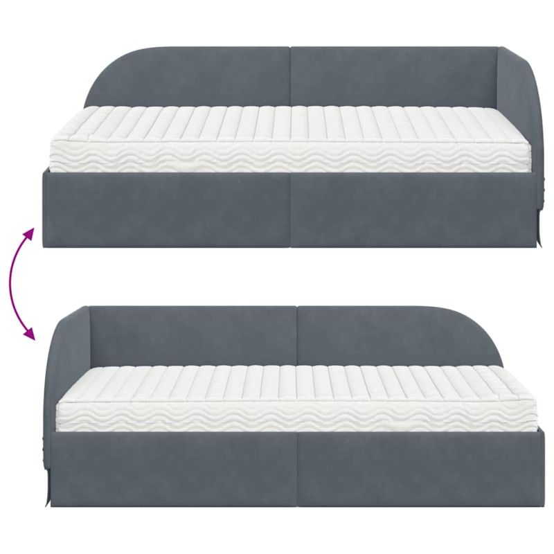 Ъглова рамка за легло с матрак с таблото 2 pcs Сив Кадифе