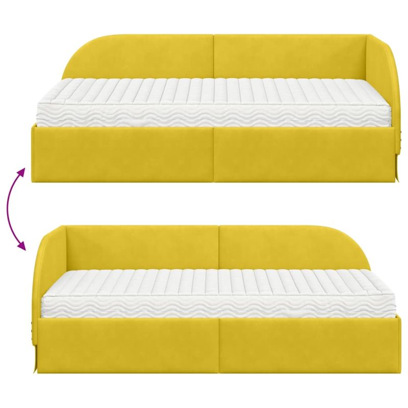 Ъглова рамка за легло с матрак с таблото 2 pcs Жълто Кадифе
