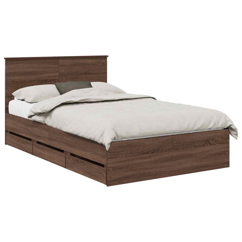 Рамка за легло Кафяв дъб 135 x 190 cm Инженерна дървесина