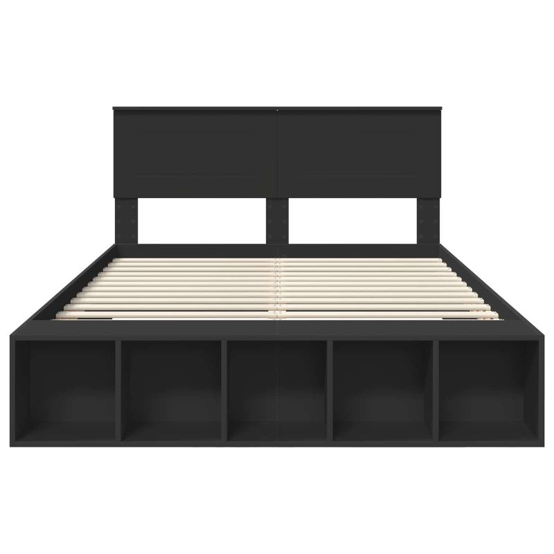 Рамка за легло с рафт Черно 140 x 200 cm Инженерно дърво