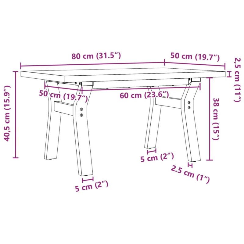 Кафе маса Y-образна рамка 80x50x40,5 см бор масив и стомана