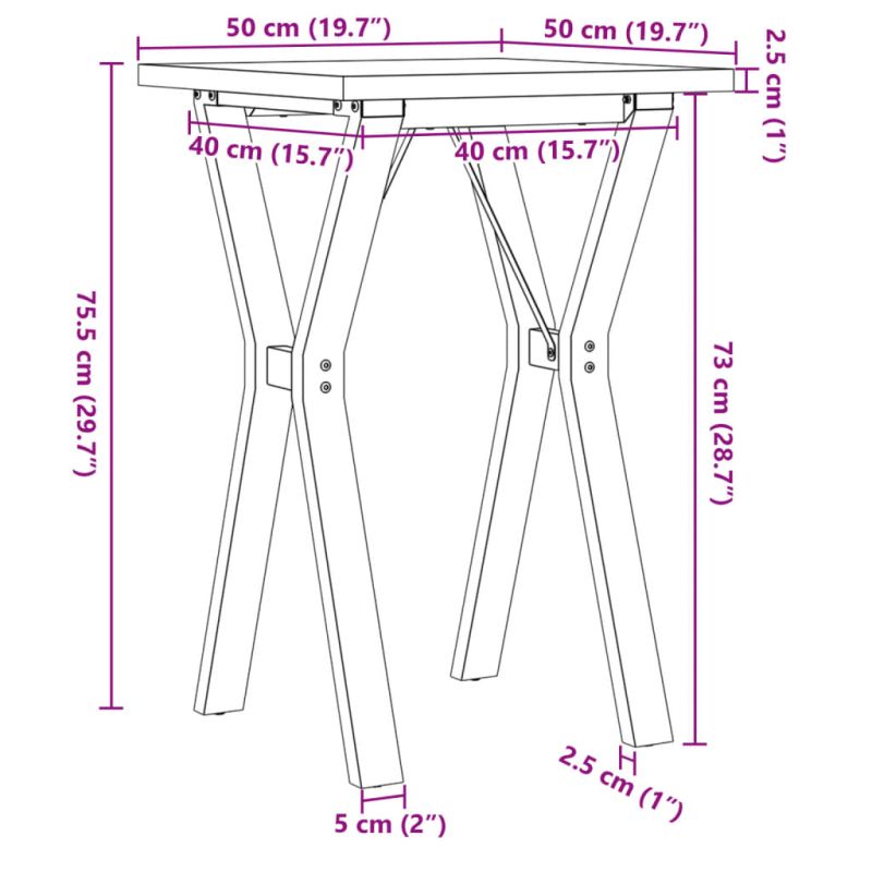 Трапезна маса Y-образна рамка 50x50x75,5 см бор масив и стомана