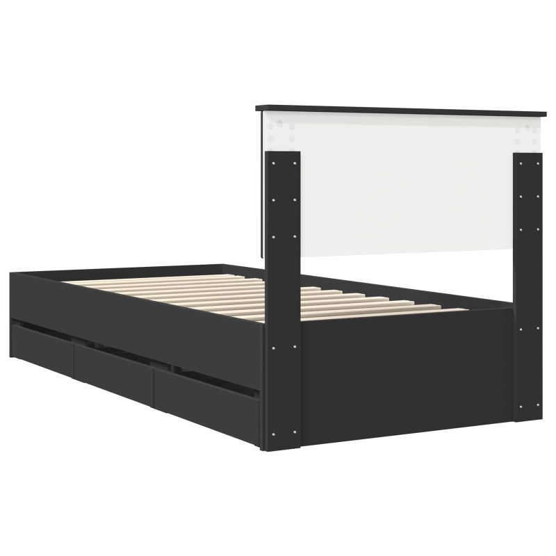 Рамка за легло с чекмедже Черно 90 x 200 cm Инженерна дървесина
