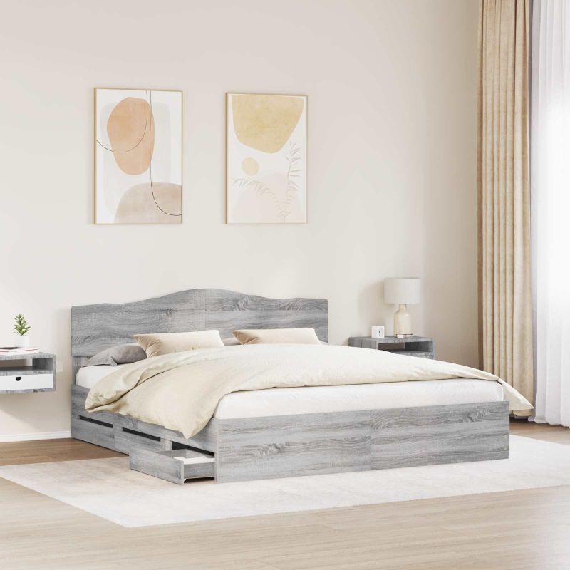 Рамка за легло Сив Сонома 180 x 200 cm Инженерна дървесина