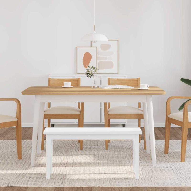 Тази пейка е идеална за подобряване на всяко вътрешно пространство с елегантност. Здрав и стабилен: Масивното каучуково дърво е красив естествен материал. Каучуковото дърво има плътно зърно и е удароустойчиво и издръжливо.Дървени крачета: Дървените крачета осигуряват отлична стабилност, като същевременно придават естествен и приятен вид на пейката за сядане.Универсално място за сядане: Тази пейка за сядане е идеална за трапезария или допълнително място за сядане и се вписва идеално в различни вътрешни пространства, като добавя стил и комфорт във всяка стая.Лесен за почистване: Благодарение на гладката си повърхност тази пейка се почиства лесно с влажна кърпа.