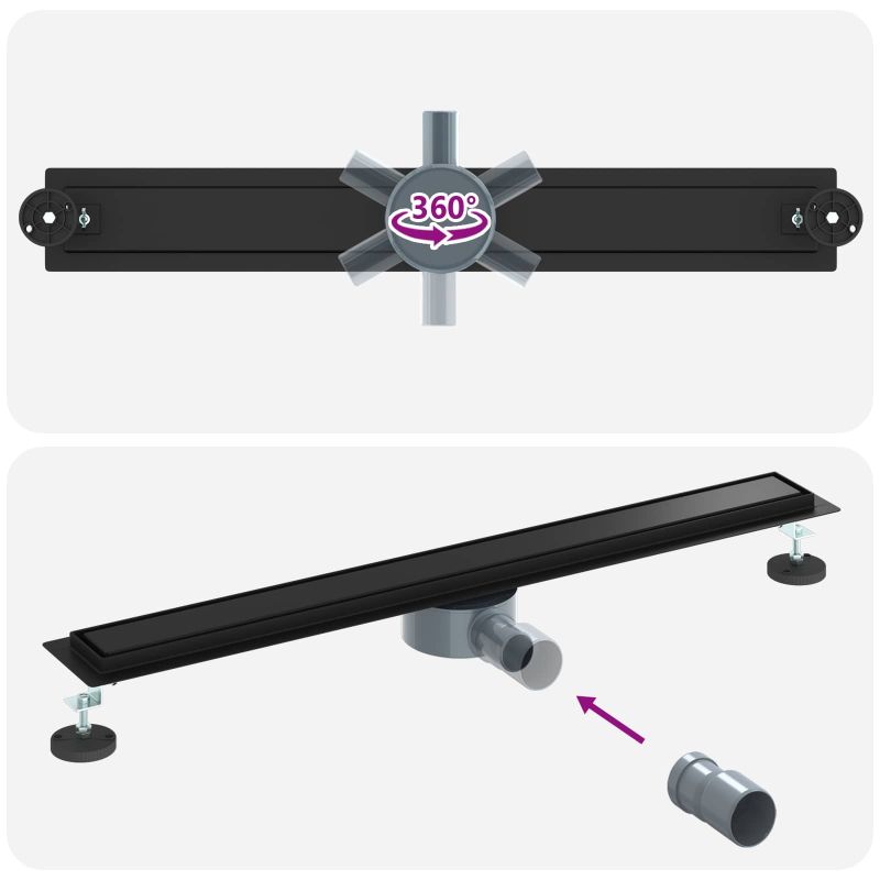 Душ канал 2-в-1 с 360° сифони Черно 80 cm