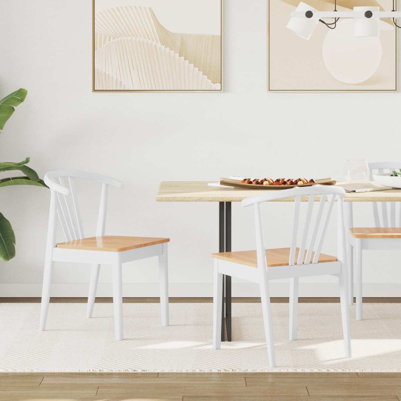 Трапезен стол 2 pcs бяло и естествено Солиден каучуков материал