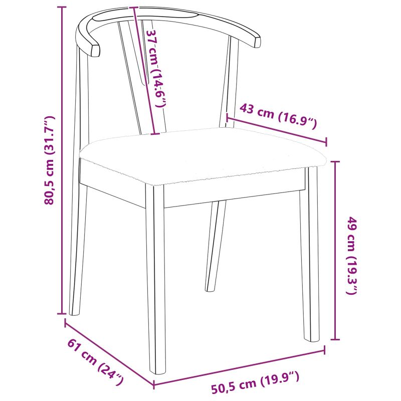 Трапезен стол 2 pcs Естествено и светло Солидно гумено дърво