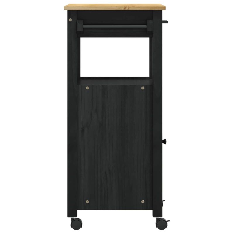 Кухненска количка Черно 88,5 x 40 x 48 см Солиден бор