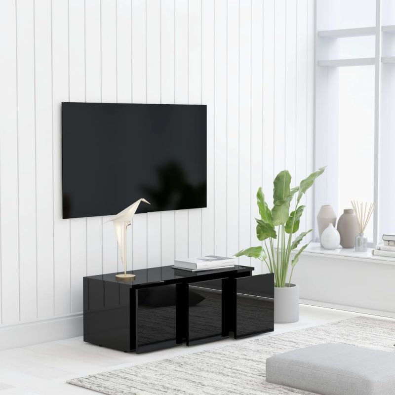 ТВ шкаф, черен гланц, 80x34x30 см, инженерно дърво