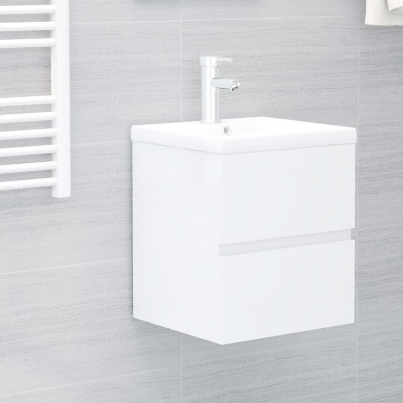 Шкаф за мивка, бял гланц, 41x38,5x45 см, инженерно дърво