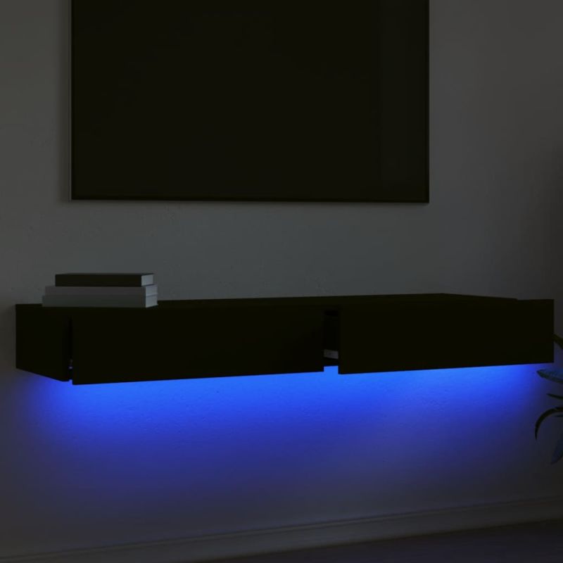 ТВ шкафове с LED осветление, 2 бр, черни, 60x35x15,5 см