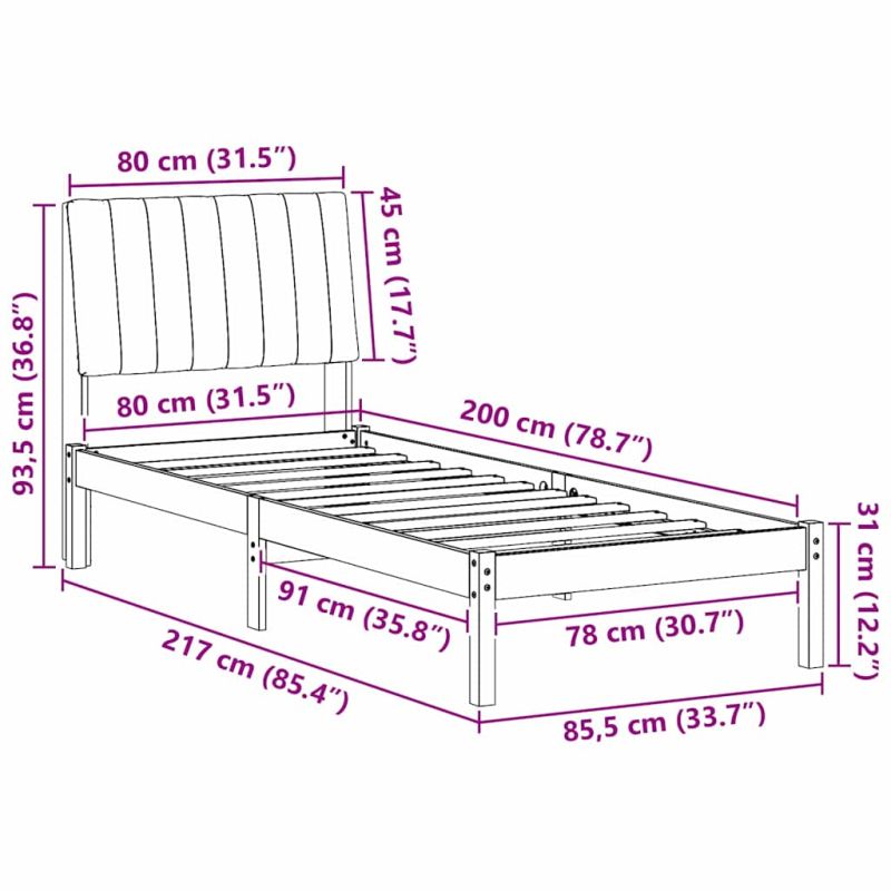 Рамка за легло Кафяво 80 x 200 cm Солидно борово дърво