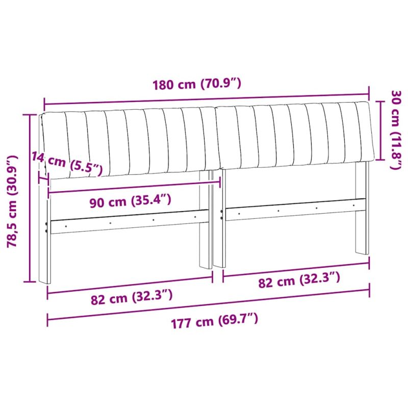Начало Дом и градина Мебели Легла и аксесоари Табли за легла Тапицирана табла Тъмен сив 180 cm Солидно борово дърво