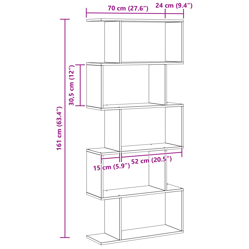 Шкаф за книги Черния дъб 70 x 24 x 161 см Инженерно дърво