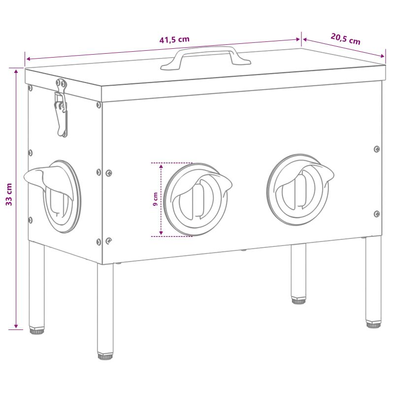 Тази метална хранилка за кокошки комбинира здравина и стил, така че хората, които обичат птиците, да имат нужната практичност и естетика. Идеално се вписва в селски обори и модерни интериори, има модерен завършек, който обогатява атмосферата на всяко птиче място. С размери 41.5 x 20.5 x 33 см, тя предлага оптимален капацитет, за да нахрани кокошките, като намалява честотата на зареждания и увеличава ефективността на храненето. Въведете я в ярка градина или подходящо закрито пространство – хранилката превръща всяко място в държава на удобство между форма и функция. Модерен дизайн: Тази метална хранилка за кокошки е модерна, със семпъл и функционален вид. С чисти линии и минималистичен декор, тя лесно се вписва навсякъде, повишавайки атмосферата, докато върши основна работа. Здрава конструкция: Изработена от здрава стомана, хранилката усеща натоварването от ежедневната употреба. Нейната надеждност значи, че няма нужда от честата подмяна, ако я ползвате на открито, сертификат за дълготрайност в условия на атмосферни влияния. Адаптивност: Хранилката лесно се пренася вътре и навън, предлагайки много опции за позициониране и работа. Подходяща е както за задния двор, така и за закрити пространства, покривайки различни нужди в храненето на вашите домашни любимци. Лесна поддръжка: Тази хранилка е проектирана за лесно почистване; просто я избършете с суха кърпа и е готова. Лесната поддръжка ви спестява време и усилия, докато запазва хигиеничността. Оптимален размер: С размери 41.5 x 20.5 x 33 см, хранилката е компактна, но с достатъчен капацитет, за да нахрани всички ваши птици. Поставя се удобно и не заема много място, като все пак е снабдена с необходимо капацитет за хранене.