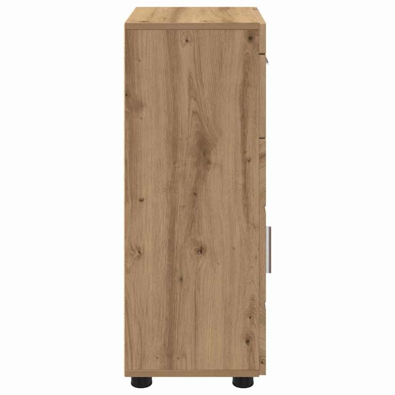 Този модерен комплект за баня внася елегантност и чисти линии. Проектиран с мисъл за функция и стил, той използва инженерна дървесина за стабилно и издръжливо решение за съхранение. Идеален за различни интериори, комплектът допълва съвременните бани и предлага достатъчно пространство за основни вещи. Гладката текстура и матовото покритие добавят стил, а ефективният дизайн го прави подходящ за всякакъв размер на бани. Конструкция от инженерна дървесина Изработен от инженерна дървесина, комплектът предлага дълготрайност и здравина. Непрозрачната и гладка текстура на материала придава изтънчен вид, докато стабилната структура осигурява надеждност. Устойчивостта му помага за запазване на формата и вида с времето. Обширен капацитет за съхранение Шкафът предлага просторни отделения, идеални за организиране на кърпи, хигиенни принадлежности и почистващи материали. Щедрото пространство позволява бърз и лесен достъп до необходимото, осигурявайки подредена среда. Матов финиш Матовото покритие добавя елегантен и модерен вид на шкафовете. То подчертава дизайна и по естествен начин се вписва в различни декори на бани, добавяйки изтънченост. Лесни указания за поддръжка Поддържането на шкафовете е лесно - просто избърсвайте с влажна кърпа. Тази проста процедура осигурява дълготрайност и свежина, за безпроблемна поддръжка. Необходима сглобка За сглобяването на шкафовете са нужни двама души и отвертка. Процесът е лесен и позволява на потребителите да се запознаят с конструкцията на новите шкафове.