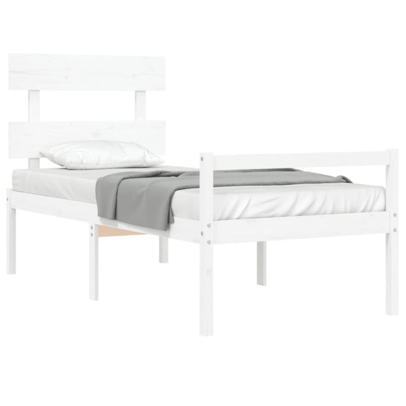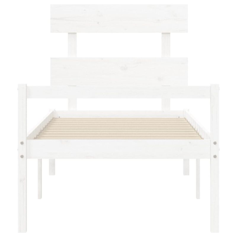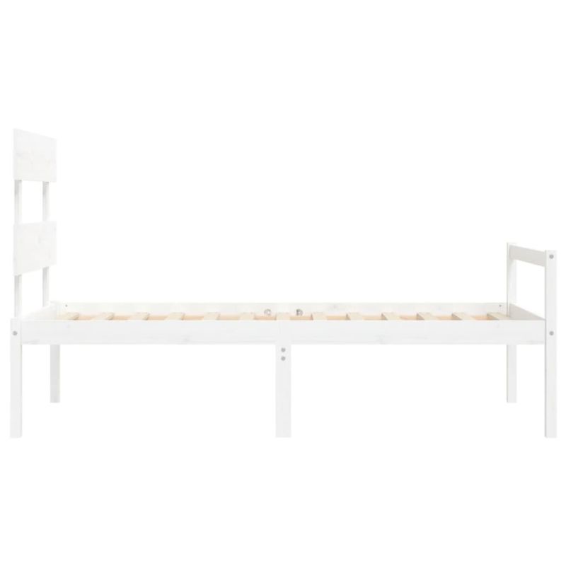 Легло за възрастни с табла, бяло, единично, масивно дърво
