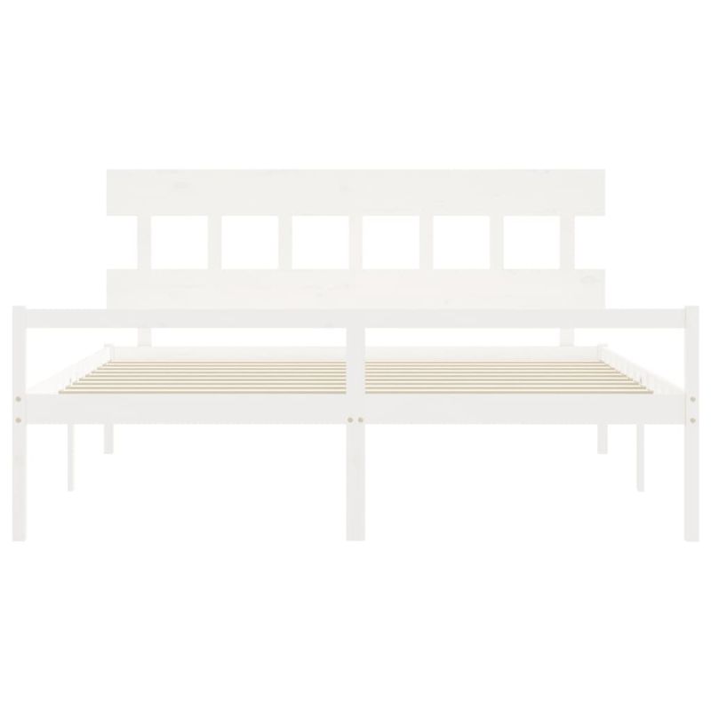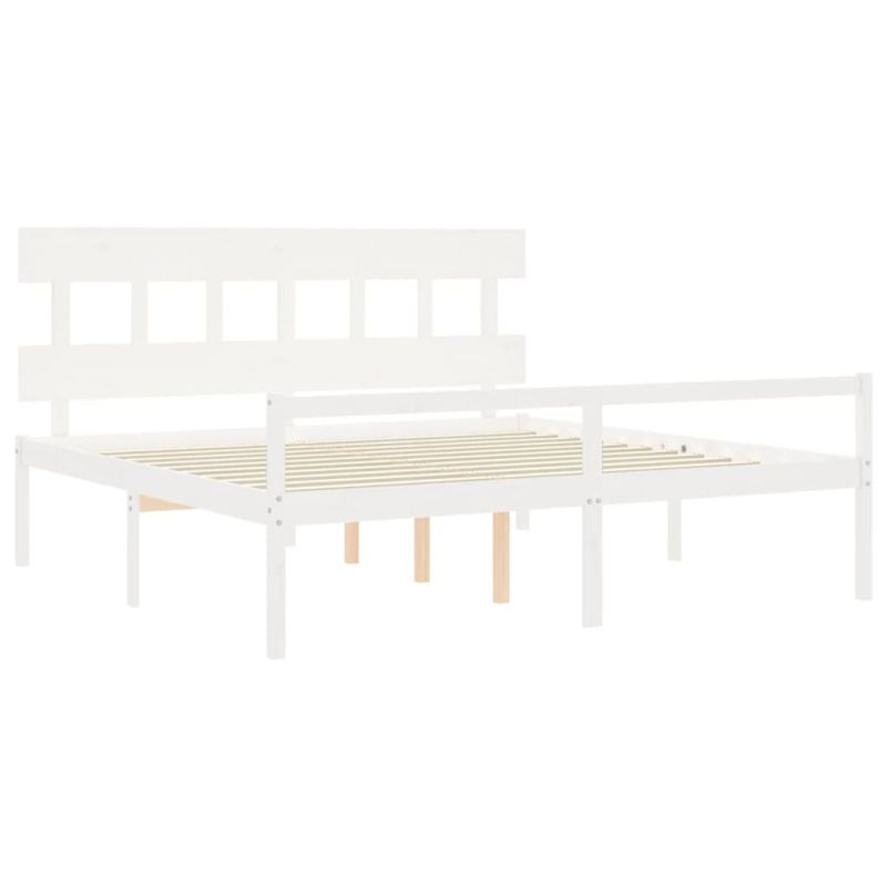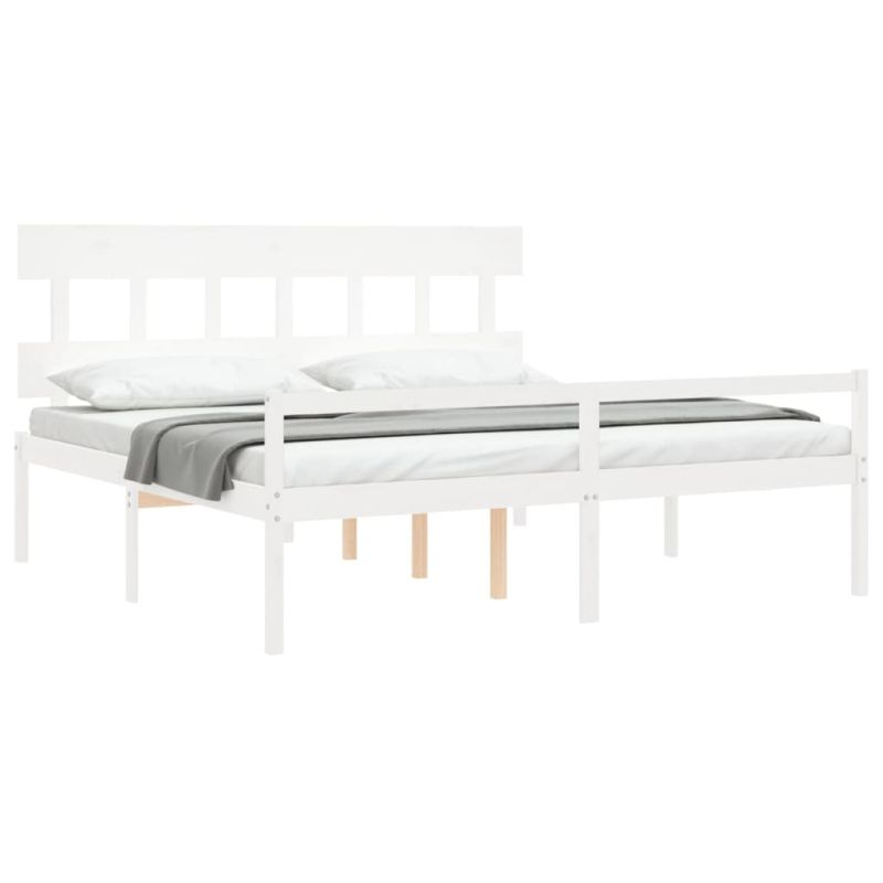 Легло за възрастни с табла, бяло, Super King Size, дърво масив
