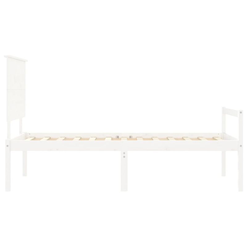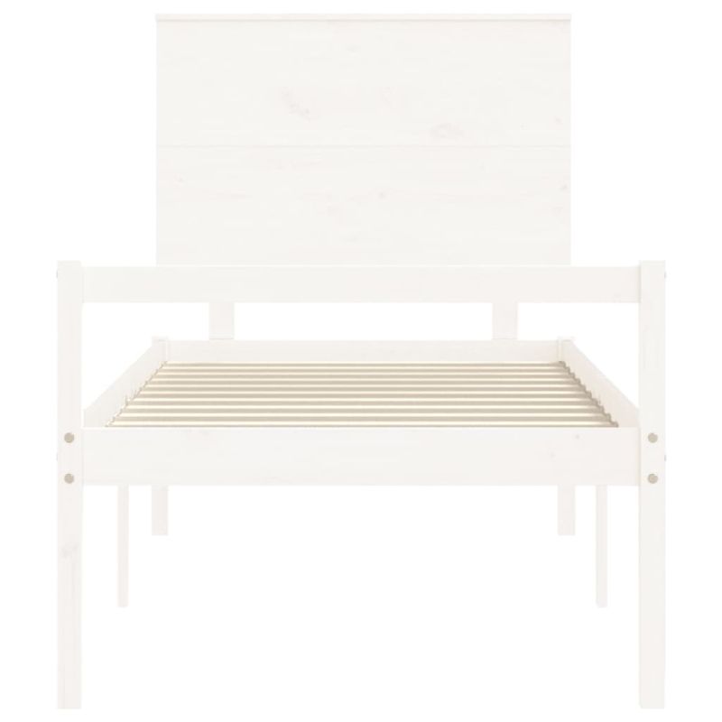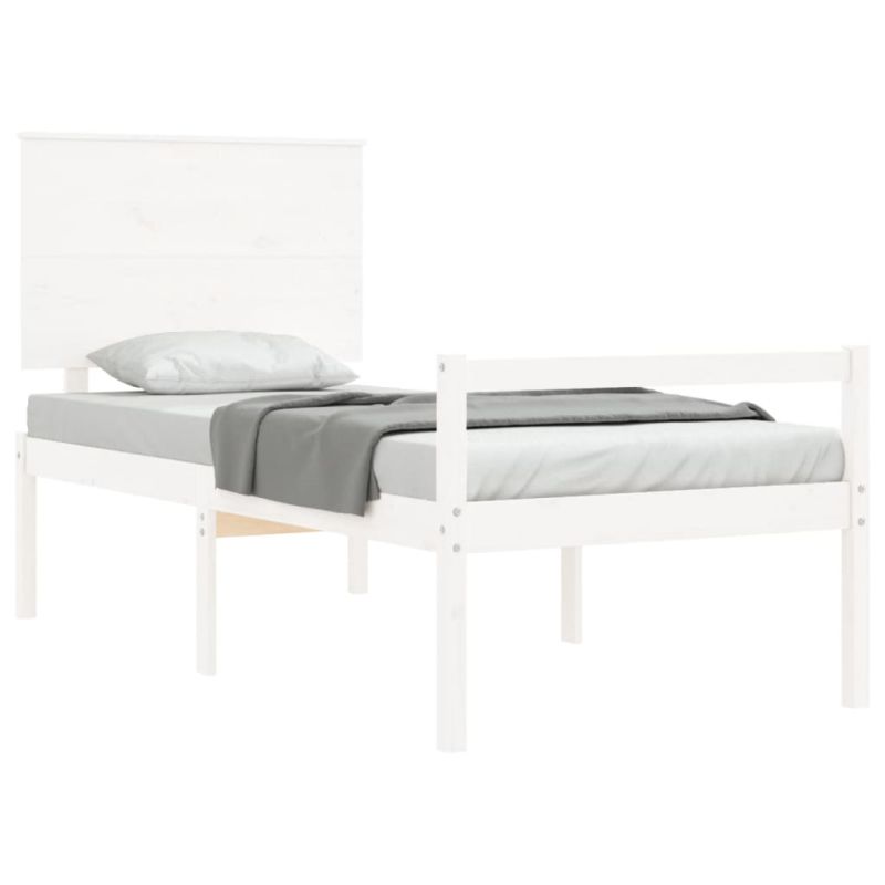 Легло за възрастни с табла, бяло, единично, масивно дърво