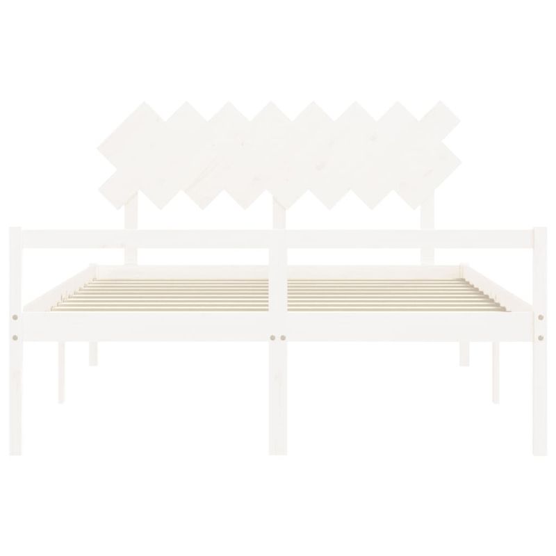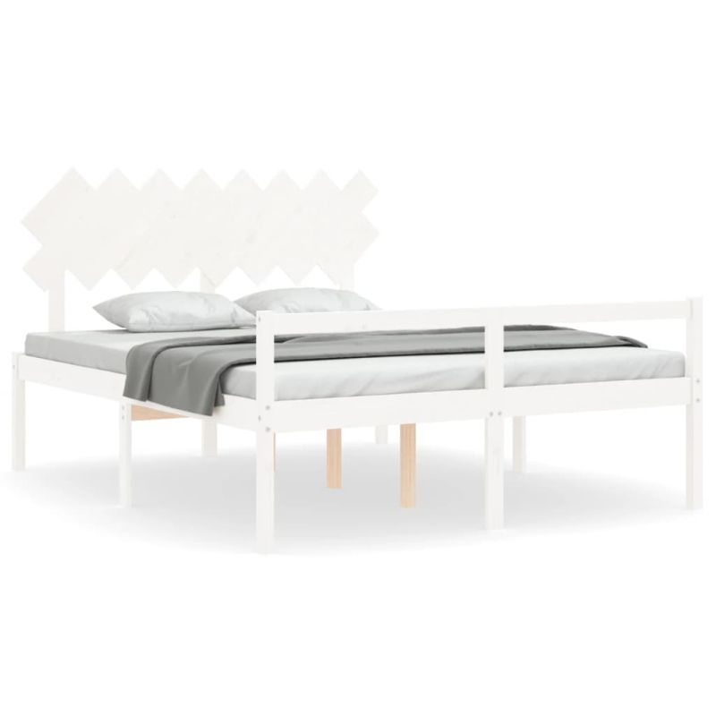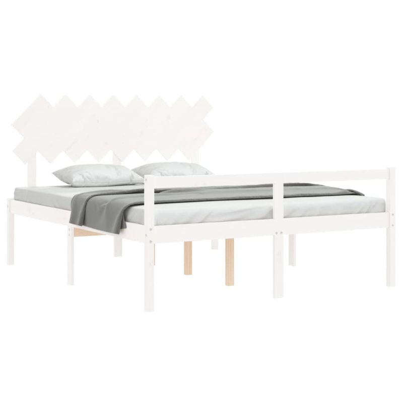 Легло за възрастни с табла, бяло, 160x200 см, масивно дърво