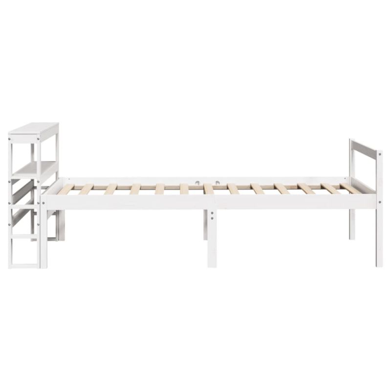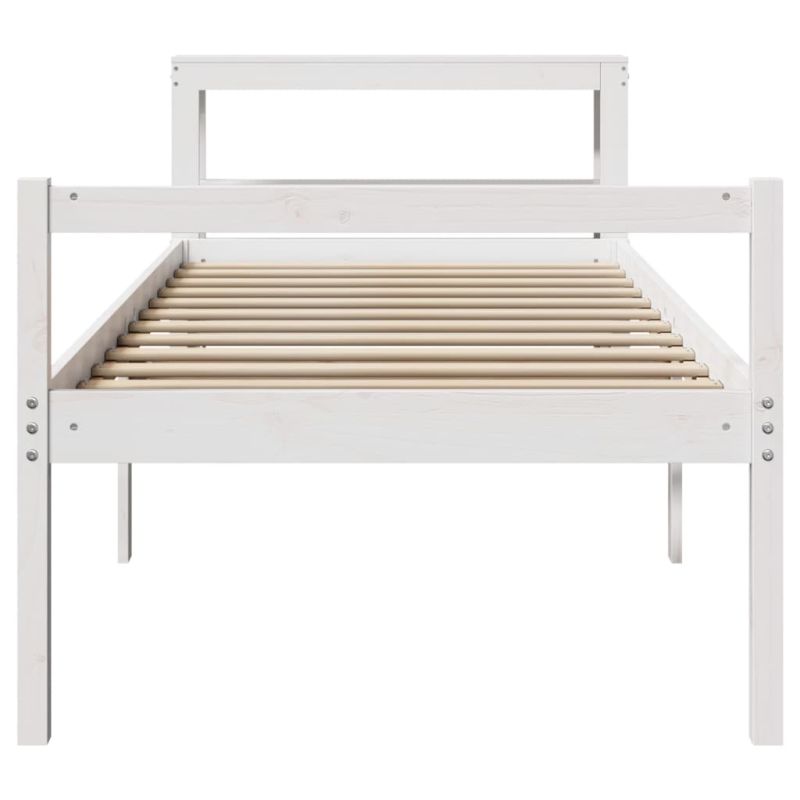 Легло за възрастни с табла, бял, 75x190 см, борово дърво масив