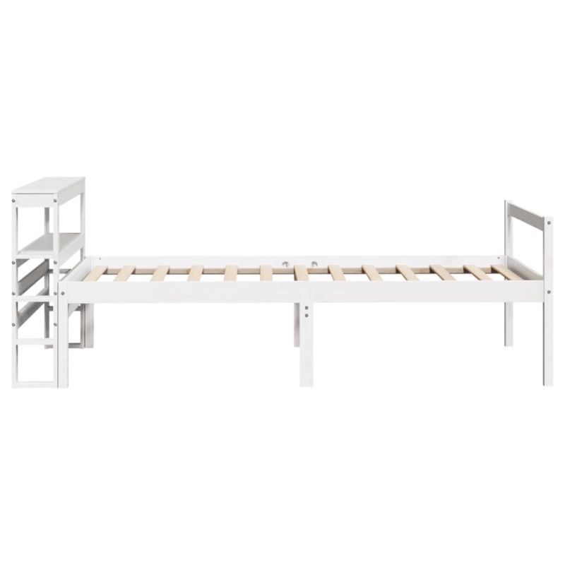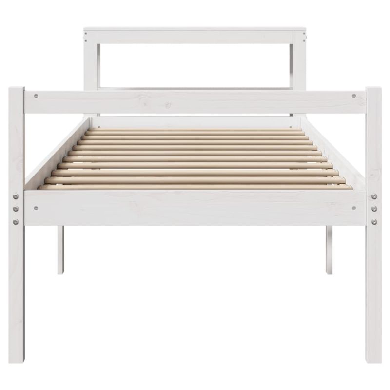 Легло за възрастни с табла, бял, 90x190 см, борово дърво масив