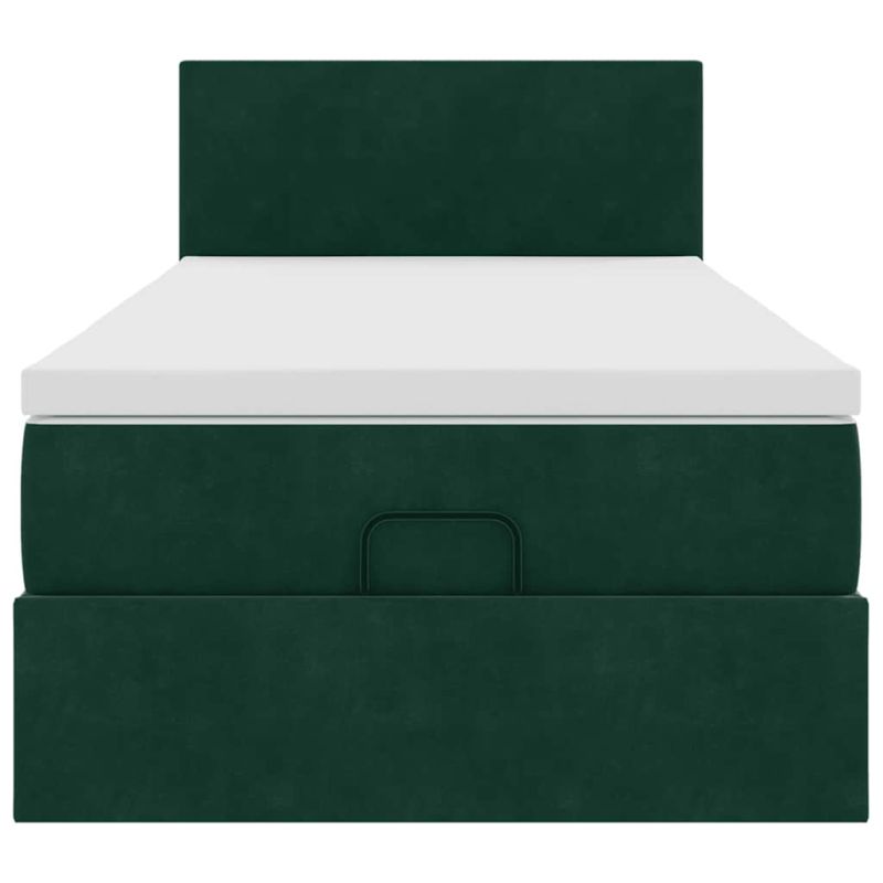 Османска легло с матрак, тъмнозелено, 100x200 см, кадифе