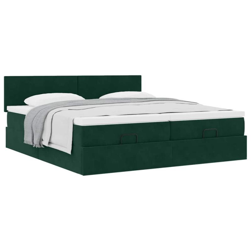 Османска легло с матраци, тъмнозелено, 200x200 см, кадифе