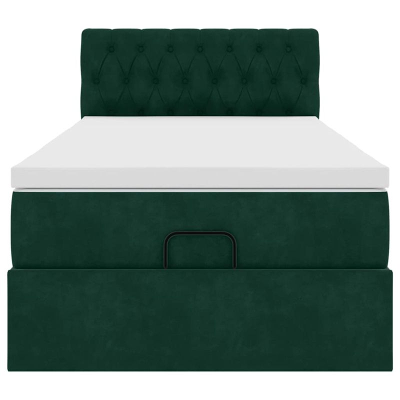 Османска легло с матрак и LED, тъмнозелено, 100x200 см, кадифе