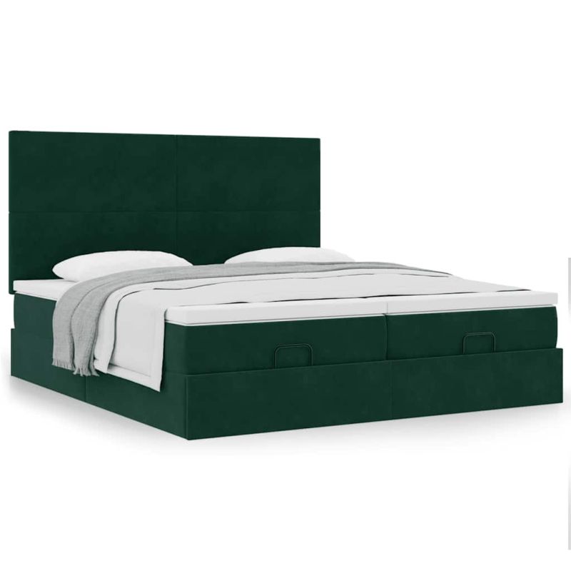 Начало Дом и градина Мебели Легла и аксесоари Легла и рамки за легла Османска легло с матраци, тъмнозелено, 200x200 см, кадифе
