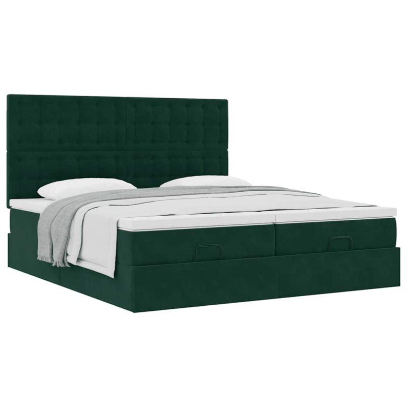 Османска легло с матраци, тъмнозелено, 200x200 см, кадифе