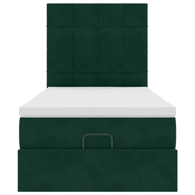 Османска легло с матраци и LED, тъмнозелено, 100x200 см, кадифе