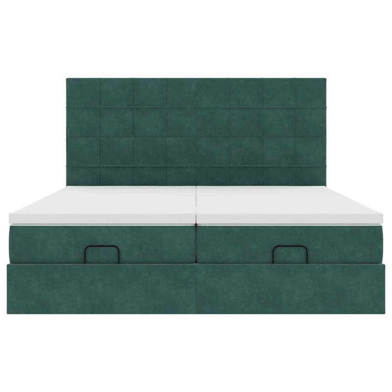 Османска легло с матраци и LED, тъмнозелено, 200x200 см, кадифе