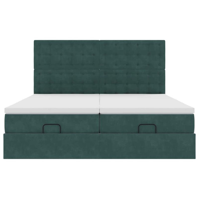 Османска легло с матраци и LED, тъмнозелено, 200x200 см, кадифе