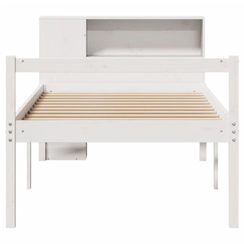 Легло с рафтове за книги, без матрак, бял, 90x190 см, бор масив