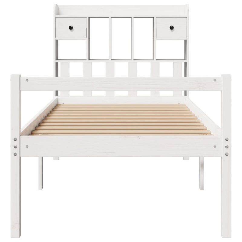 Легло с рафтове за книги, без матрак, бял, 75x190 см, бор масив