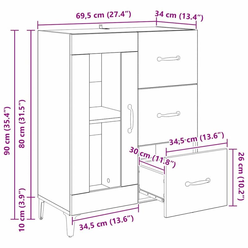 Служебен шкаф с чекмедже Дъб 69,5 x 34 x 90 см
