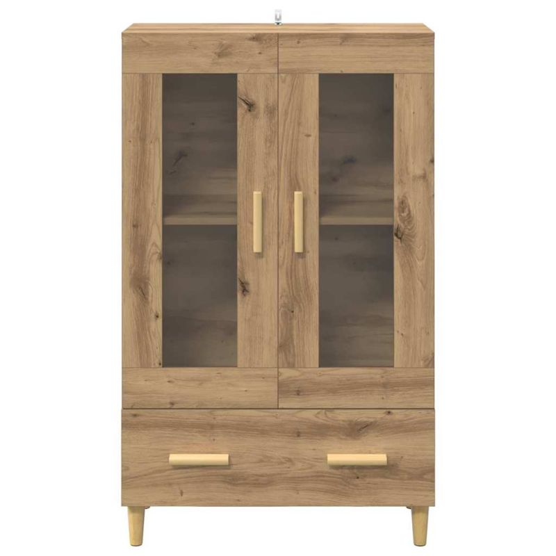 Този Висок шкаф от инженерна дървесина съчетава модерен стил с практичност и е идеален за всяка всекидневна. С елегантното си правоъгълно оформление, добавя модерен акцент и е идеален за подреждане и показване на вашите любими вещи. Полирани дръжки, стеснени крака и стъклени врати придават нотка елегантност, а рамката от инженерна дървесина осигурява дълготрайна издръжливост. Независимо дали става дума за съхранение на книги, показване на декор или важни предмети, този шкаф предлага достатъчно пространство и лесно се вписва в модерни и минималистични интериори. Качество на конструкцията: Високият шкаф е направен от инженерна дървесина, известна със своята стабилност и устойчивост на износване. С внимателна изработка, осигурява дълготрайност и запазва вида си дори при честа употреба. Инженерната дървесина е екологичен вариант, съчетаващ здравина и трайност. Модерна визия: Съвременният дизайн на шкафа е прост, функционален и с минимални детайли. Чистите линии и стъклените врати с полирани дръжки създават елегантен елемент, идеален за модерния интериор. Перфектен за добавяне на нотка шик в помещението. Функционални компоненти: С плоскостни рафтове и чекмеджета на топчета, този шкаф осигурява гъвкаво пространство за съхранение. Стъклените врати позволяват да виждате какво има вътре, но и предпазват от прах. Бежовите крака добавят винтидж стил и стабилност на различни повърхности. Универсални приложения: Проектиран за всякакви пространства, идеален за всекидневни, предоставя стилно решение за съхранение и се адаптира към променящите се интериорни нужди. Може да се използва за носене на спомени, организиране на ежедневни предмети или показване на красиви вещи. Грижа и поддръжка: Лесно се поддържа, само трябва да се избърше с влажна кърпа. За безопасност, закрепването на шкафа към стената предотвратява премахването, осигурявайки спокойствие в натоварени домакинства. Сглобяването е лесно и изисква двама души с отвертка, което е удобно и практично.
