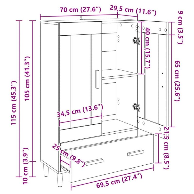 • Общи размери: 70 x 31 x 115 см (Д x Ш x В)