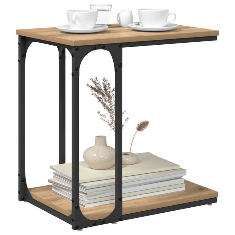 Тази C-образна странична маса с място за съхранение е страхотно модерно и функционално парче за вашето пространство. Минималистичният ѝ дизайн с изчистени линии внася стил и лесно се съчетава с различни декори. Била е перфектен спътник на дивана или леглото - с удобна повърхност за напитки, книги или декорации, добавяща към атмосферата на стаята. Инженерни дървесни рафтове: Масата предлага здрави рафтове от инженерна дървесина, които са издръжливи и лесни за поддръжка. Предлагат достатъчно място за книги, списания или декорации без жертване на стил. Стоманени крака: Простият, но здрав дизайн на стоманените крака осигурява стабилност и здравина, добавяйки издръжливост. Компактна и многофункционална: С C-образния си дизайн, може лесно да се позиционира до диван или легло. Компактната ѝ форма е идеална за малки пространства. Модерна визия: Изчистените и минималистични линии са подходящи за любителите на съвременния дизайн. Фокусирана е върху функционалността, без да теряи елегантност. Лесна сглобка: Просто подравнете и закрепете с отвертка. Няма нужда от сложни инструменти, готова е бързо.