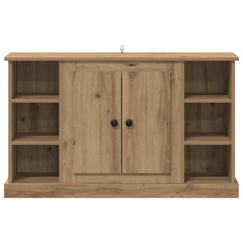 Този селски шкаф е точното допълнение за всяка всекидневна или трапезария, предлагайки стил и функционалност. Правоъгълната му форма и конструкцията от инженерна дървесина го правят здрав, осигурявайки достатъчно пространство за съхранение, без да е натрапчив. С чаровната си селска визия и черните матови дръжки, този шкаф добавя нотка на красота, вдъхновена от природата, и е подходящ за много интериорни стилове. Представи си как е станал част от събирания с приятели или помага в организирането на нещата с ред и стил в дома ти. Изграждане от инженерна дървесина: Този шкаф е изработен от качествена инженерна дървесина, известна със своята здравина и равномерен вид. Материалът предлага модерен стил, който устоява на ежедневното износване. Инженерната дървесина е и отговорен избор за дома. Вградени рафтове: С вградените рафтове, този шкаф предлага удобни решения за съхранение, които влизат в стиловия дизайн на стаята. Перфектен за организиране на посуда или ежедневни неща, рафтовете осигуряват практичност и лесен достъп до всичко. Врати с панти: Шкафът има врати с панти, които се отварят плавно и затварят сигурно. Изработени от същата инженерна дървесина, те поддържат визуално единството на шкафа, а матовите черни дръжки добавят елегантен контраст. Просторен интериор: Проектиран за хора с нужда от много пространство, интериорът предлага щедро място за съхранение. Независимо дали става въпрос за покривки, книги или декор, този шкаф доста добре покрива ежедневните нужди за съхранение. Лесна поддръжка: С гладка повърхност, този шкаф улеснява поддръжката. Просто избърсване с влажна кърпа поддържа всичко в отлично състояние, и е перфектен за заетите домакинства. Освен това, закрепването към стената предотвратява преобръщане, осигурявайки безопасно дългосрочно ползване.