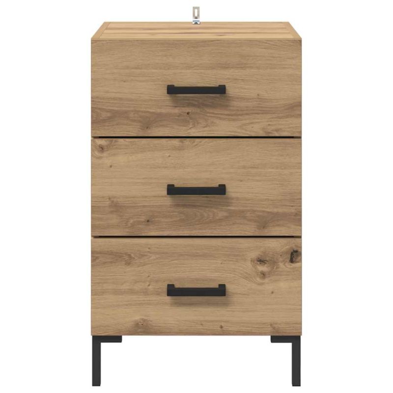 Това модерно нощно шкафче съчетава рустикален чар и съвременен дизайн, който може да променя вида на всяка спалня. Перфектно е за до леглото и предлага стилно и практично решение за вашите нощни нужди. Размерите 40 x 40 x 66 см го правят идеално за по-малки пространства, а елегантните линии на дизайна добавят щрих на изтънченост в спалнята. Изграждане от инженерна дървесина: Осигурява стабилна структура с естетична привлекателност и лесна поддръжка. Дизайн на традиционно чекмедже: Чекмеджето се отваря гладко с матова дръжка, което улеснява достъпа и съхранението на вещи. Рустикални стилови акценти: Внася естествени текстури и цветове в спалнята, създавайки приветлива атмосфера. Вътрешна съвместимост: Проектирано за употреба в спалнята, където служи и като функционален, и като декоративен елемент. Включени инструкции за сглобяване: Лесно се сглобява с отвертка от двама души, с предоставени ясни инструкции.