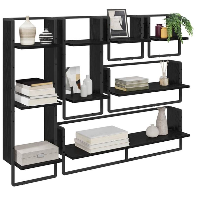 Комплект стенни рафтове 6 pcs Черния дъб 100 x 25 x 30 cm