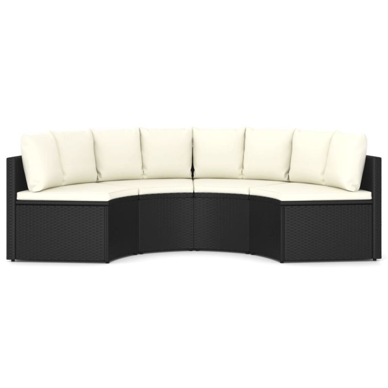 Градински комплект с възглавници, 4 части, полиратан, черен