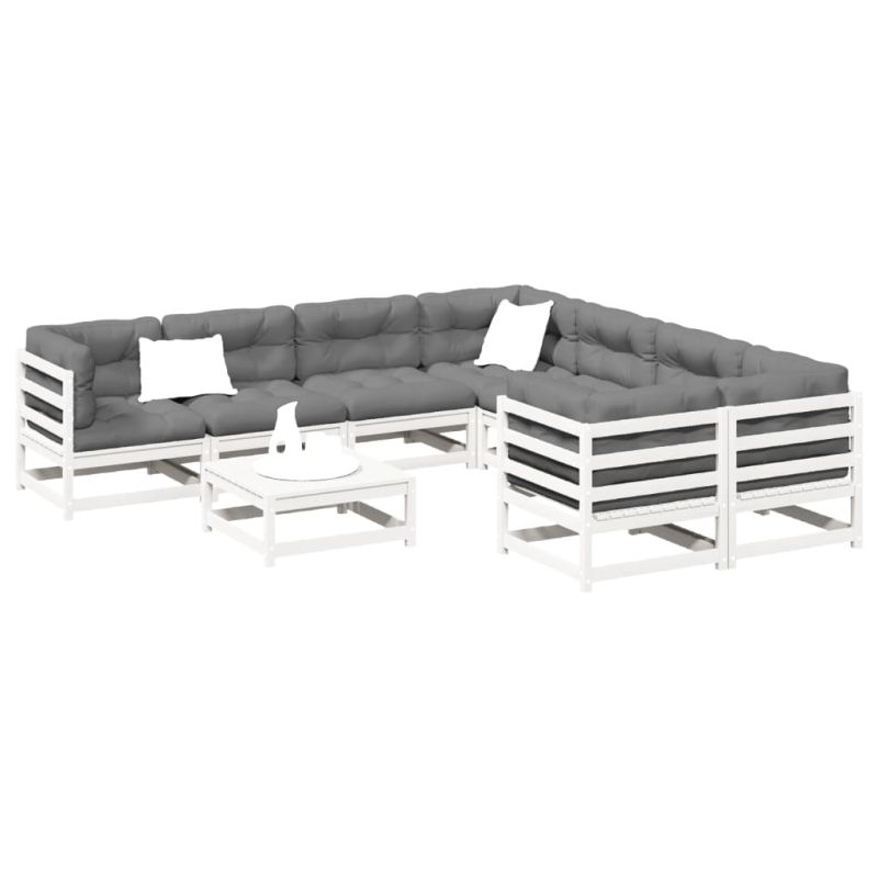 Градински комплект диван от 9 части, бял, масивно дърво бор