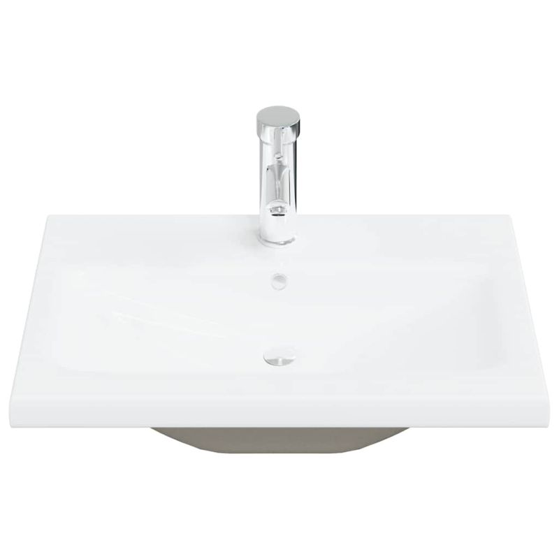 Този практичен комплект мебели за баня, разполагащ с просторно пространство за съхранение, е отлично допълнение към вашата баня, като ѝ придава подреден и впечатляващ вид! Издръжлив материал: Инженерната дървесина е с изключително качество с гладка повърхност и също така се отличава със здравина, стабилност и устойчивост на влага.Издръжлив материал: Мивката за баня, изработена от керамика, има устойчива повърхност, която издържа на удари, петна и драскотини, което гарантира дълготраен блясък.Голямо пространство за съхранение: Шкафът за баня предлага достатъчно място за съхранение, за да може лесно да побере основните ви тоалетни принадлежности и принадлежности за баня, като сапуни, шампоан, паста за зъби и др.Функция за монтиране на стена: Мебелите за баня могат да се монтират на стената, за да се добави допълнително място за съхранение. По този начин можете да увеличите максимално пространството и да поддържате чистотата в помещението.Ясен образ: Стъкленото лице на огледалото осигурява фино и ненарушено отражение, така че е подходящо за гримиране, бръснене или проверка на костюма преди излизане. Добре е да се знае:Винтовете и дюбелите за вътрешната стена не са включени. Съветваме ви да намерите и използвате винтове и дюбели, подходящи специално за вашите стени. Ако не сте сигурни, можете да се консултирате с професионалист. Моля, прочетете и следвайте всяка стъпка от инструкциите.