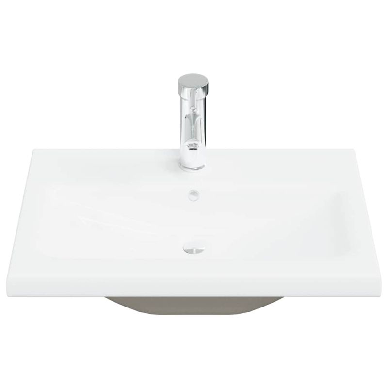 Този практичен комплект мебели за баня, разполагащ с просторно пространство за съхранение, е отлично допълнение към вашата баня, като ѝ придава подреден и впечатляващ вид! Издръжлив материал: Инженерната дървесина е с изключително качество с гладка повърхност и също така се отличава със здравина, стабилност и устойчивост на влага.Издръжлив материал: Мивката за баня, изработена от керамика, има устойчива повърхност, която издържа на удари, петна и драскотини, което гарантира дълготраен блясък.Голямо пространство за съхранение: Шкафът за баня предлага достатъчно място за съхранение, за да може лесно да побере основните ви тоалетни принадлежности и принадлежности за баня, като сапуни, шампоан, паста за зъби и др.Функция за монтиране на стена: Мебелите за баня могат да се монтират на стената, за да се добави допълнително място за съхранение. По този начин можете да увеличите максимално пространството и да поддържате чистотата в помещението.Ясен образ: Стъкленото лице на огледалото осигурява фино и ненарушено отражение, така че е подходящо за гримиране, бръснене или проверка на костюма преди излизане. Добре е да се знае:Винтовете и дюбелите за вътрешната стена не са включени. Съветваме ви да намерите и използвате винтове и дюбели, подходящи специално за вашите стени. Ако не сте сигурни, можете да се консултирате с професионалист. Моля, прочетете и следвайте всяка стъпка от инструкциите.